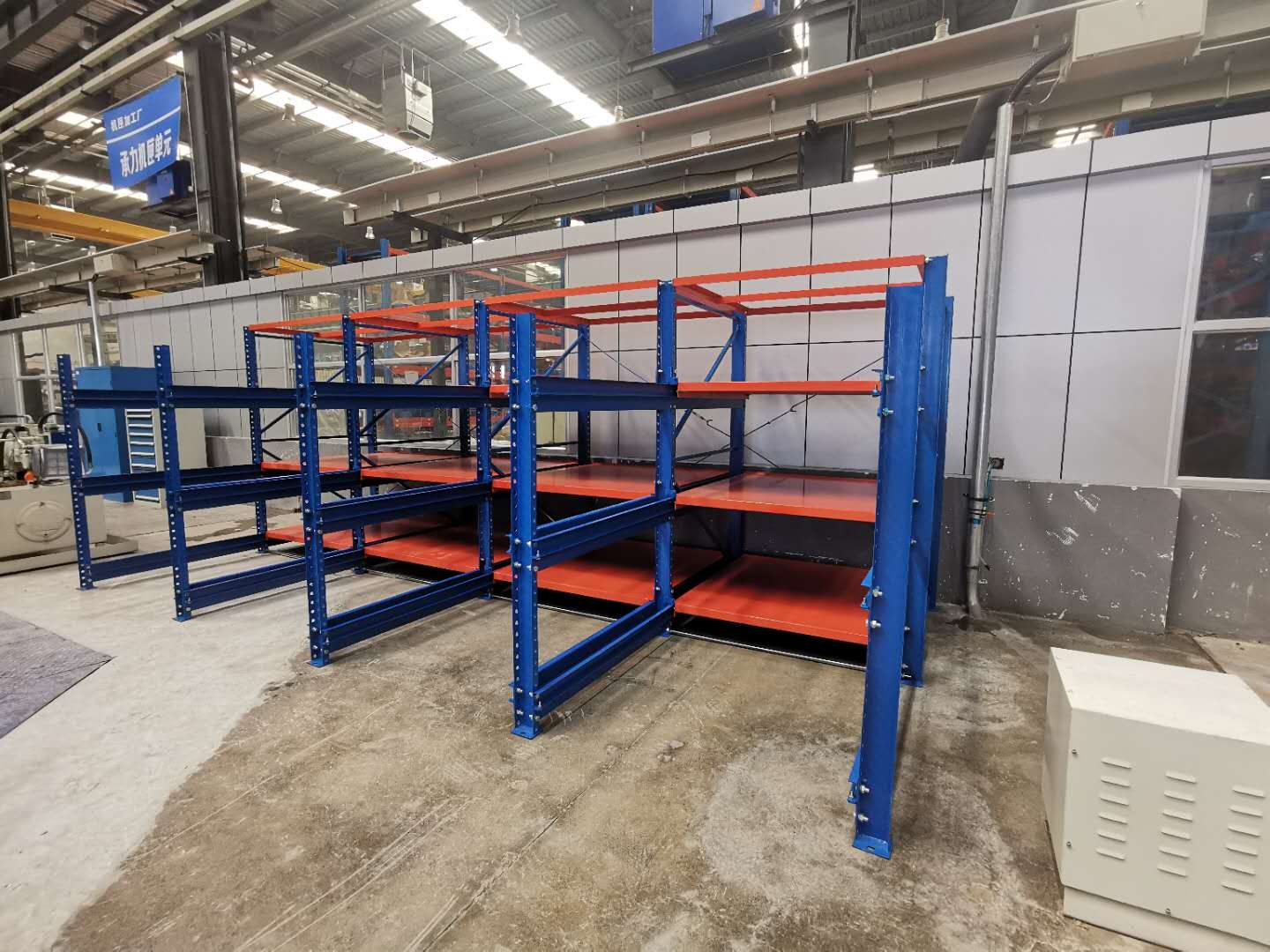 上圖是我司給沈陽一家公司生產(chǎn)定制模具貨架,模具架規(guī)格:L5700*D2600*H2090 數(shù)量一排、層數(shù)為3層加固定板 每層載重1000KG,可抽屜1300MM,立柱10#槽鋼,滑槽4.0+3.0厚度,面板1.5mm 抽屜板可按50倍數(shù)調(diào)節(jié)層高 顏色:立柱藍色/抽板桔紅色 噴涂 酸洗 磷化 防靜電噴涂