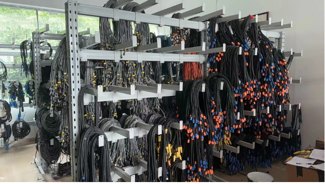倉(cāng)儲(chǔ)中為了應(yīng)對(duì)這樣的難題,我們對(duì)此做了一些創(chuàng)新,設(shè)計(jì)了懸臂貨架。兩根突出來(lái)的懸臂中間放上一根鋼管,電線電纜可以在存放的時(shí)候繞好穿插在鋼管上,這樣無(wú)論放置多久都不會(huì)散亂,取得時(shí)候也極為方便,只需要拿下鋼管即可。有外出任務(wù)的時(shí)候,還可以直接帶著鋼管走,這樣到了工作地點(diǎn),線纜也不會(huì)出現(xiàn)雜亂的問(wèn)題。